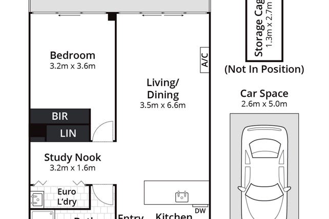 The spacious bedroom includes built-in robes and balcony access, while the modern bathroom and European laundry add to the apartment's smart design. Additional features include split-system air conditioning, double-glazed windows, and a secure car space.