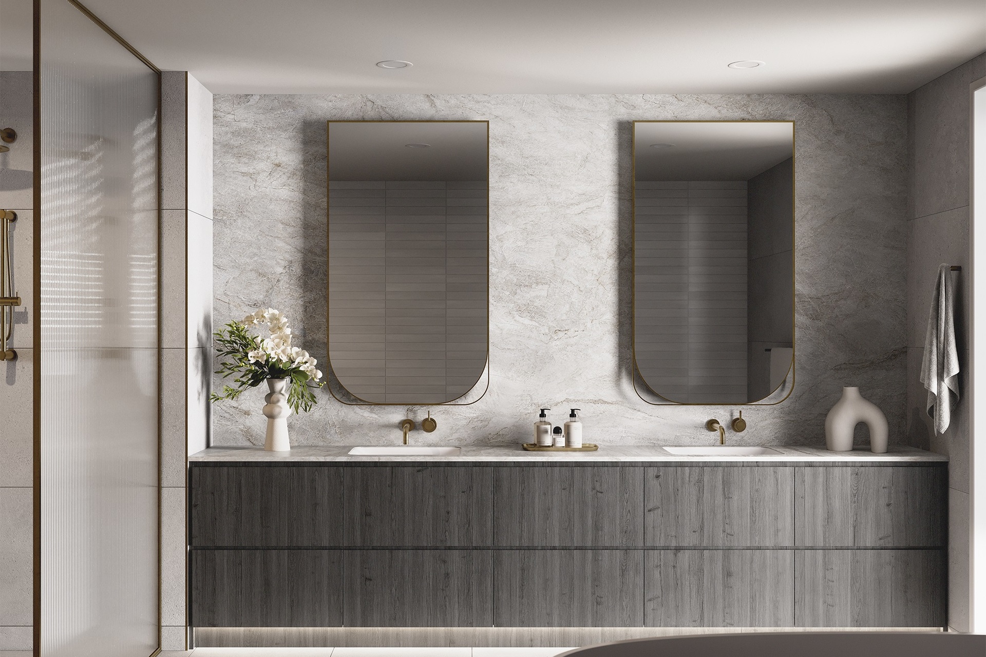 - Premium timber floors, lush carpeted bedrooms - Luxe brushed gold fixtures and finishes throughout - Kitchen with stone benchtops - V-Zug oven, induction cooktop, integrated dishwasher - Separate laundry