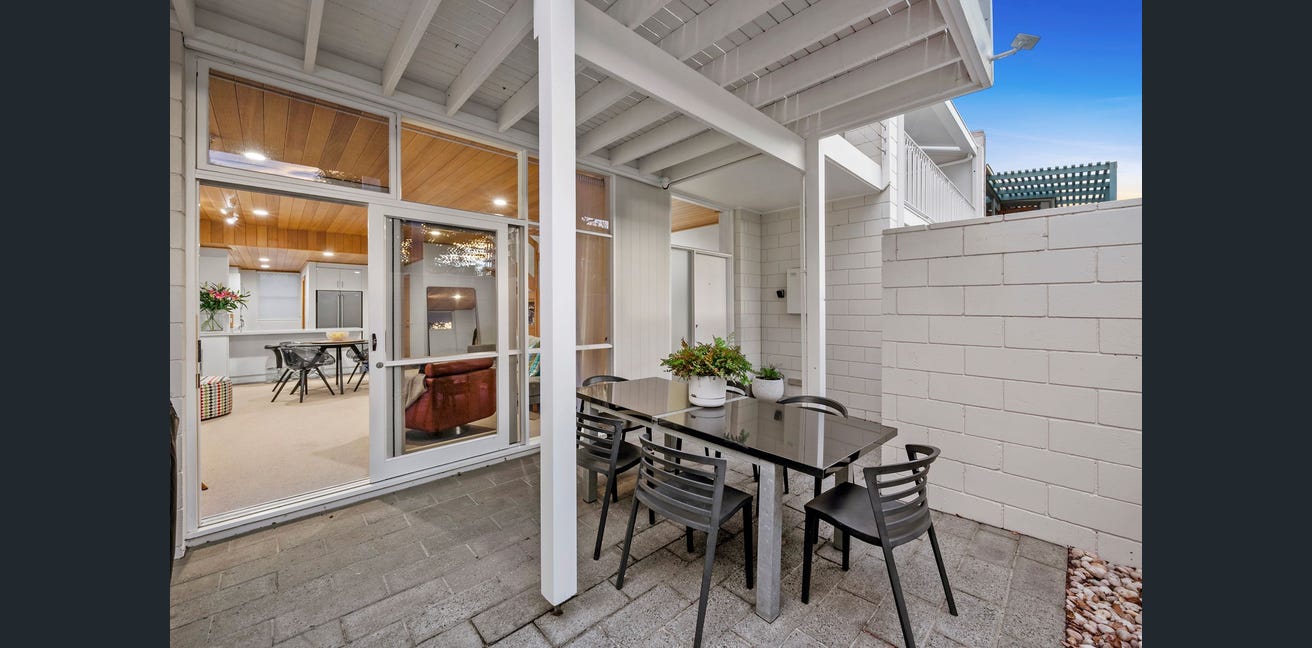 You'll fall in love with the home's unique 80s style, with floor-to-ceiling windows and timber roof paneling gracing the immaculate interiors. The open plan living/dining/kitchen zone establishes the heart of the home, where you can open the sliding door onto the front courtyard. This private outdoor setting is the perfect place to enjoy casual get-togethers with loved ones. The kitchen makes a stylish statement with stone benchtops, a F&P dishwasher and Westinghouse cooking appliances (wall oven, electric cooktop, rangehood). The laundry completes the lower level.