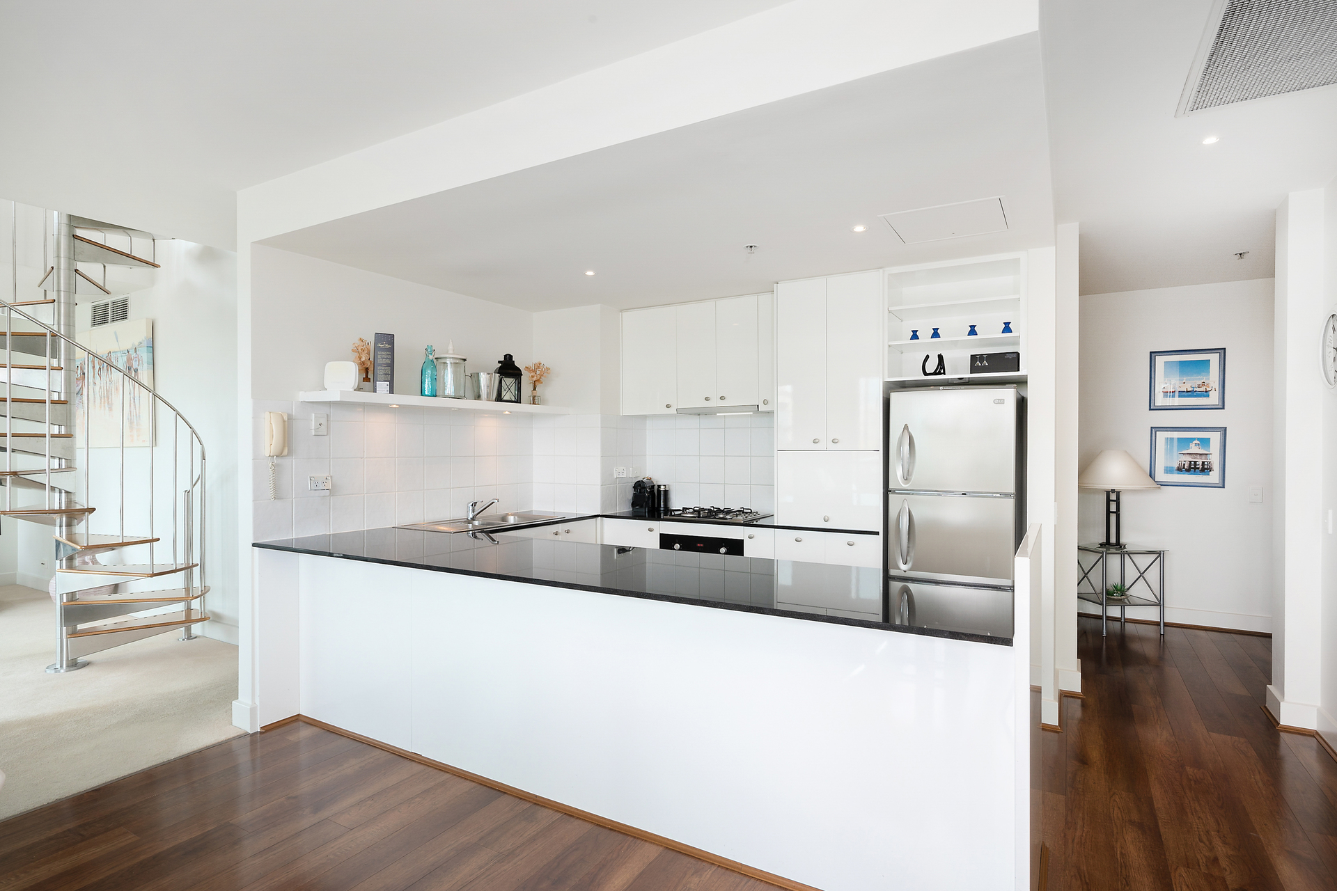 - Interiors display quality fixtures and fittings throughout - Kitchen features Bosch oven, Blanco cooktop, Fisher & Paykel dishwasher - Large master bed with ensuite, walk-in robes and water views - Bed two with spacious ensuite, built-in robes and city views - Ensuites boast marble benchtops and one has a bathtub - Oversized loft upstairs has garden, city and water views - East-facing balcony with bay views over Transvaal Gardens - Separate laundry and a powder room - Heating and cooling for all-year comfort - Secure parking for two vehicles, intercom and lift access