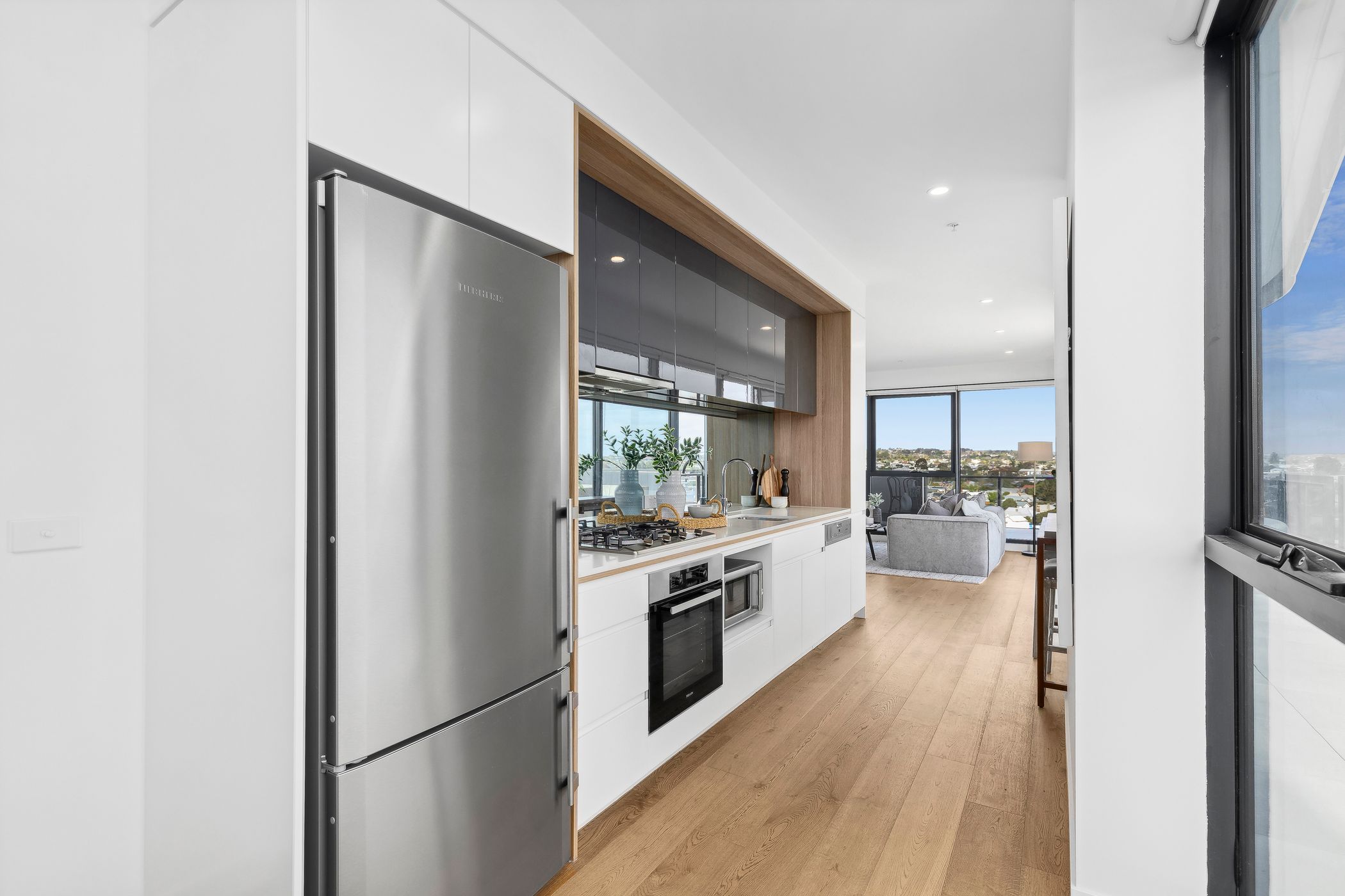 The sleek, high-end kitchen is equipped with Miele stainless-steel appliances, and the sun-filled, north-facing living area is bathed in natural light. Residents can enjoy access to a shared gym and a large sun deck with a BBQ area, perfect for warmer days. Just a short walk to the Geelong Waterfront and the CBD, the location is unbeatable.
